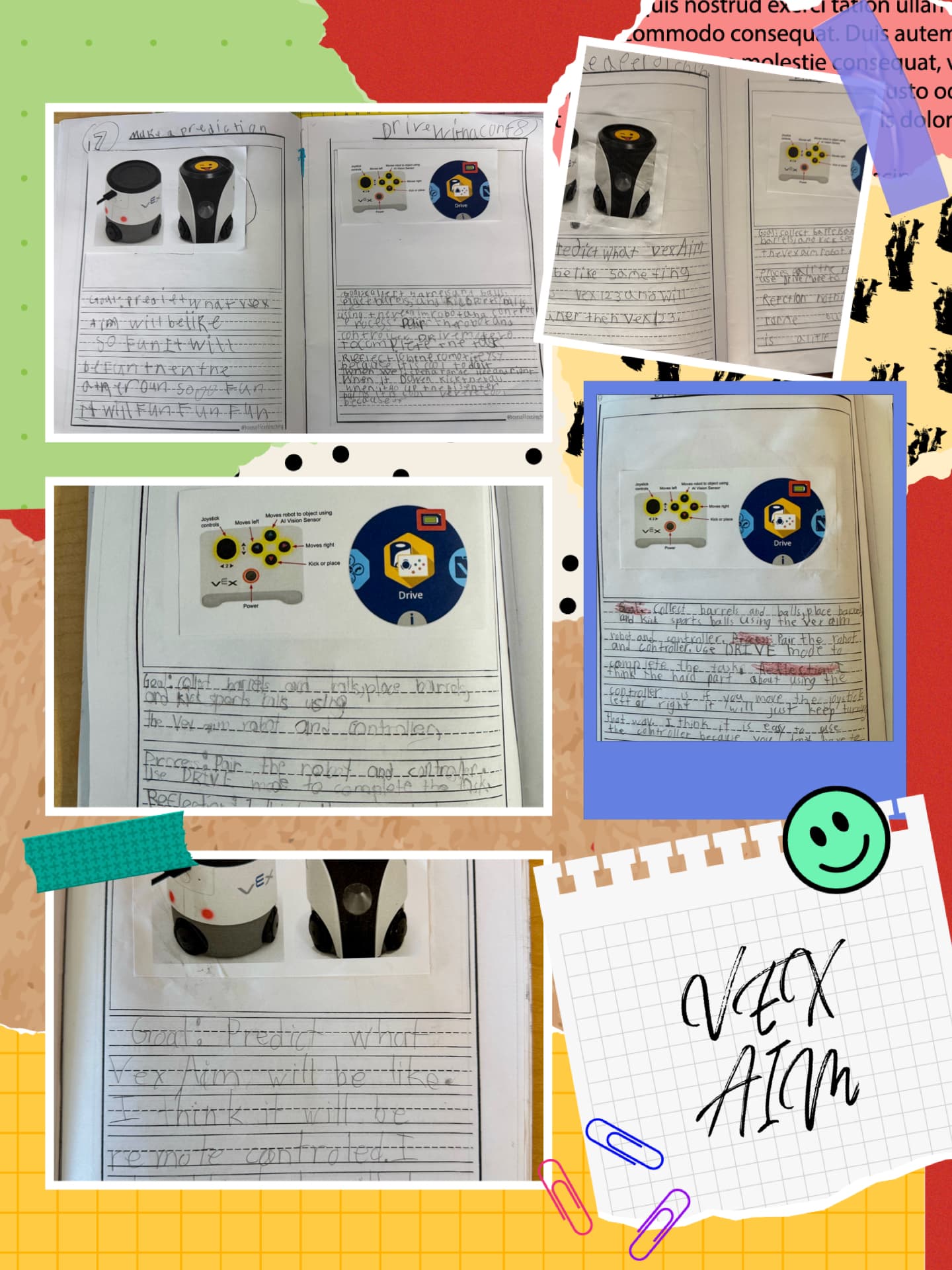The students are documenting their VEX AIM experience in their journals as well as setting goals and making predictions. I will share their coding adventures next!