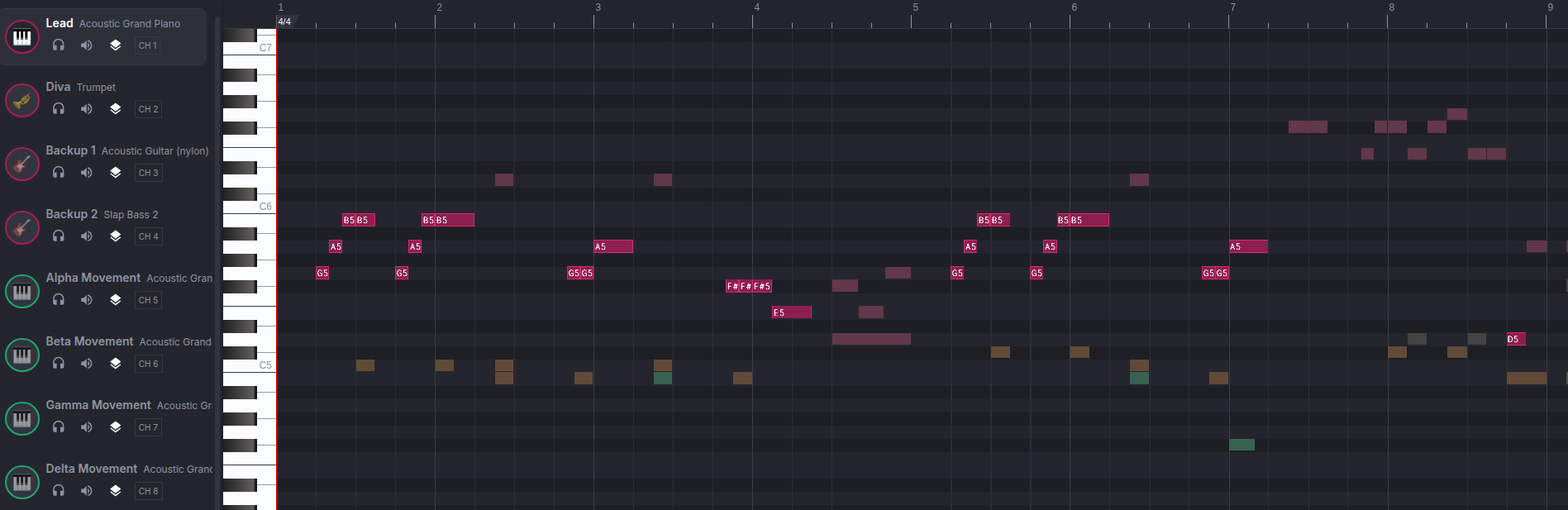 Just like how I separated the movement logic, I used separate MIDI channels to separate the MIDI messages.