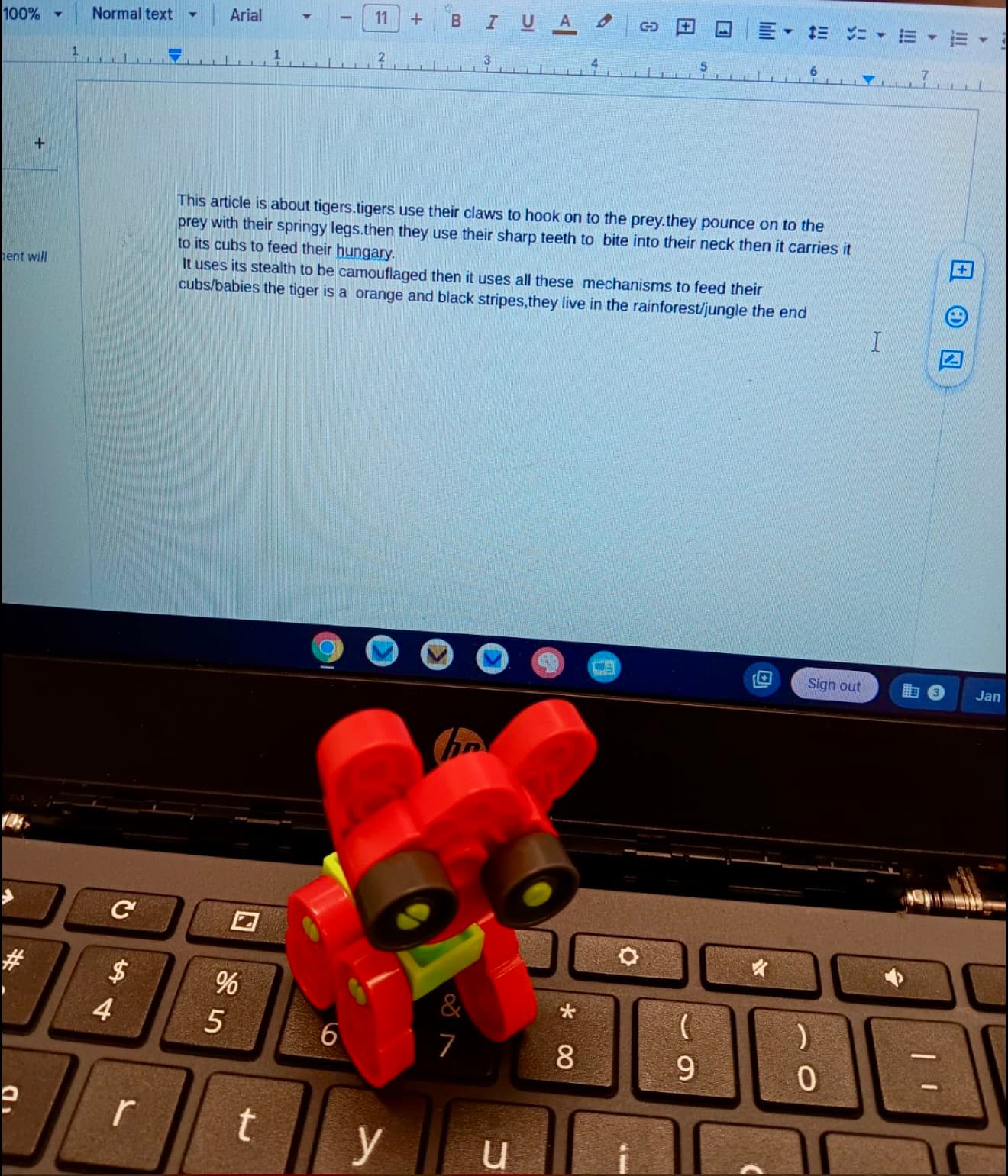 Students created animals using their VEX GO kits and then incorporated writing/typing to go along with their projects!